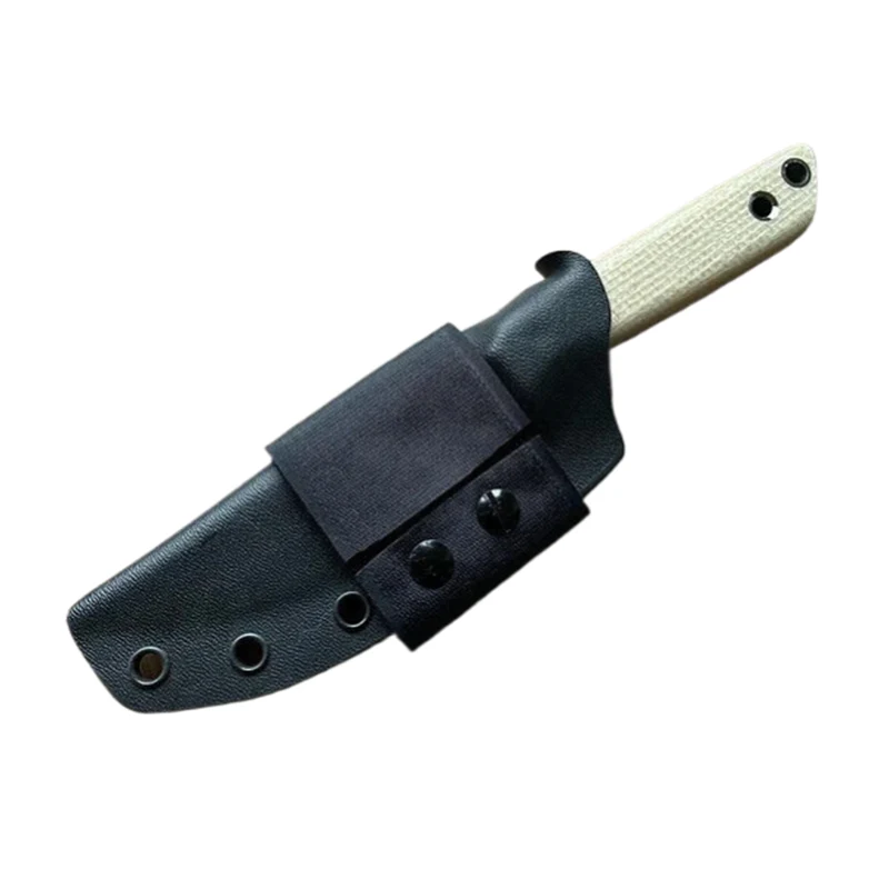 Ако сакате да го носите ножот малку пониско, ви препорачувам најлонска лента со држач Kydex. Велкро или кожни јамки се идеални за носење на ножот преку појасот. Velcro е исто така практично решение за прицврстување на ножот на ременот на вашиот ранец. Покрај обвивката Kydex, можам да закачам држач за огнен челик, по избор со огнен челик (долг 80 мм).